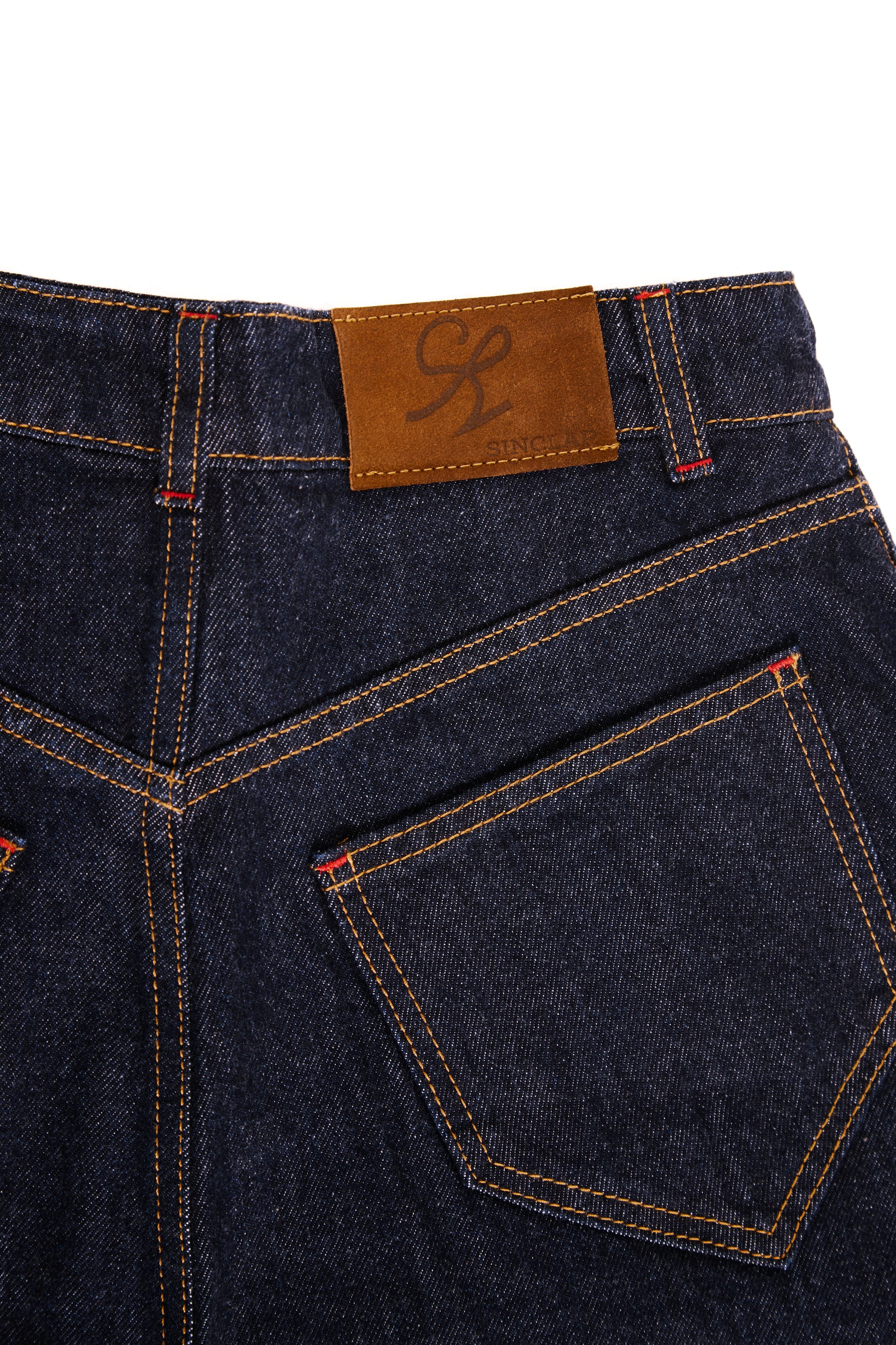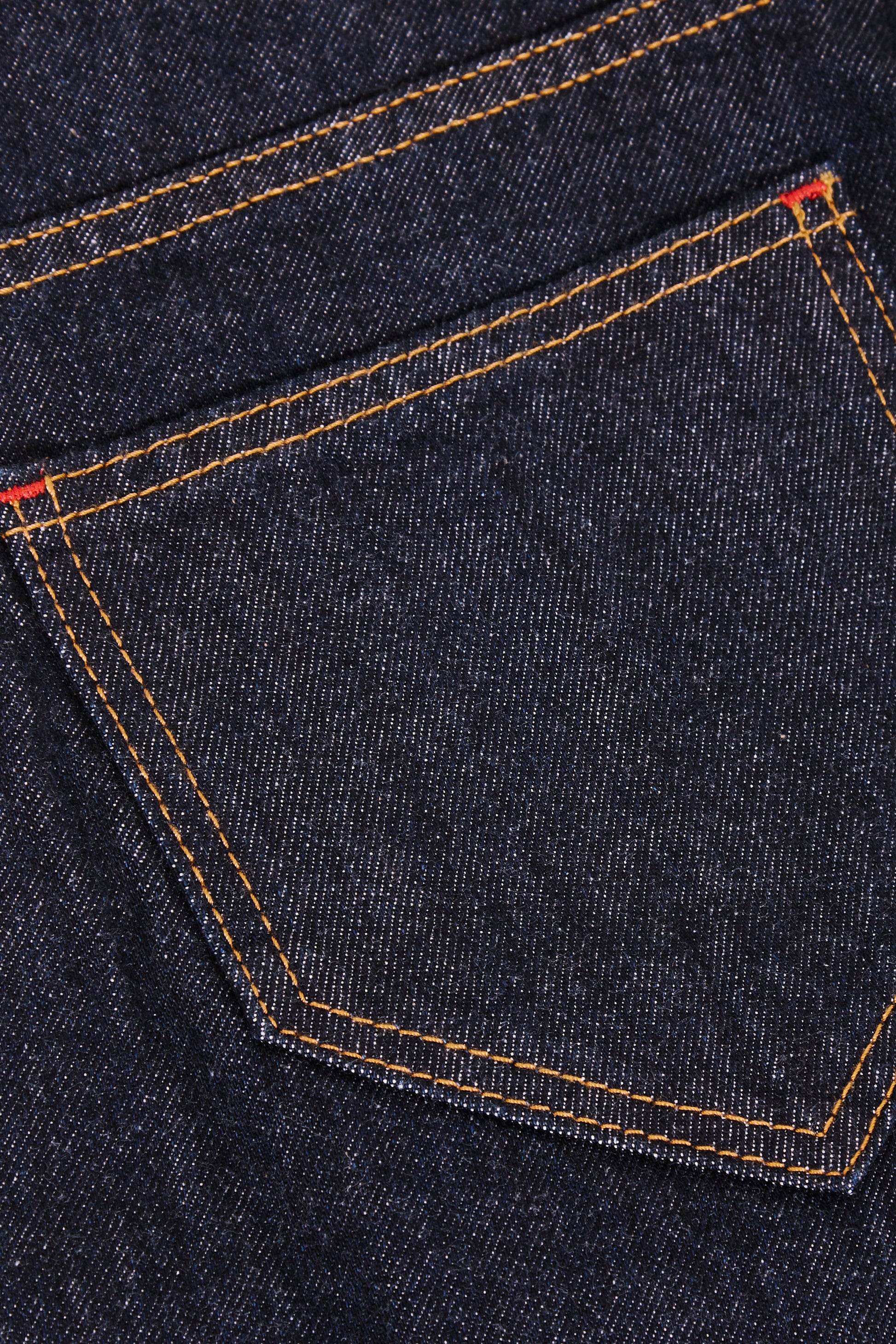Crafted from rich dark-wash denim, they're finished with bronze topstitching and our signature red bartacks for added strength. A suede leather patch, embossed with our logo, adds a final note of understated luxury.